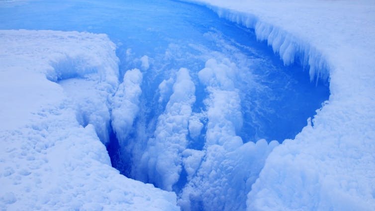 During the Antarctic summer, thousands of mesmerising blue lakes form around the edges of the continent’s ice sheet, as warmer temperatures cause snow and ice to melt and collect into depressions on the surface. Colleagues of mine at Durham University have recently used satellites to record more than 65,000 of these lakes.